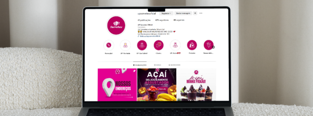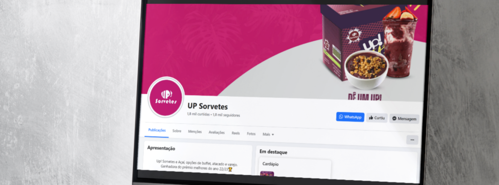 A UP! é uma premiada sorveteria e açaiteria extremamente bem avaliada da região de Curitiba. Conta com 10 lojas oficiais e realiza a distribuição de seus produtos de fabricação própria para vários outros estabelecimentos. Nos sentimos honrados em realizar a Gestão do Instagram e Facebook da conta principal, mapear estratégias de lançamentos, inaugurações, promoções, sorteios e auxiliar na promoção de dinâmicas programadas para reuniões de equipe interna.